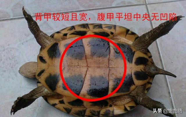 4、龟甲:公的龟甲短而宽,母的长而窄。