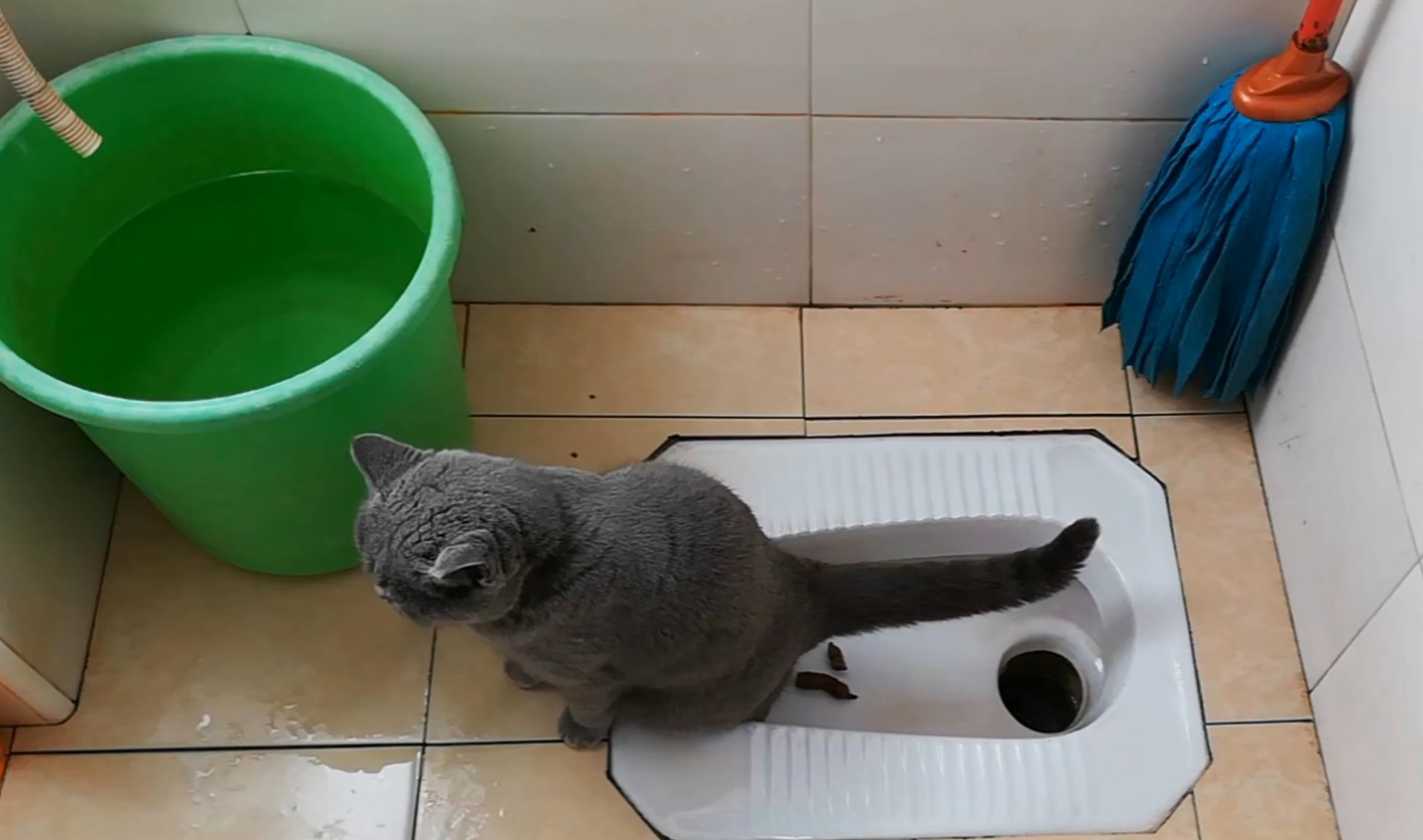 把猫砂盆藏起来,长此以往,猫咪就能在蹲坑上厕所了。