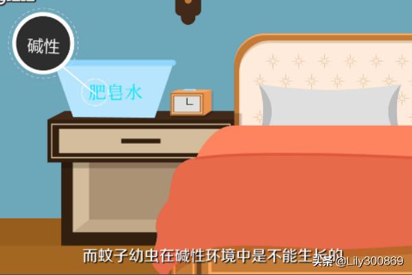 夏秋季节,在家中放一盆肥皂水或盐水。 因为肥皂水是碱性的,而蚊子幼虫在碱性环境中是不能生长的。 并且,肥皂水要定期更换。