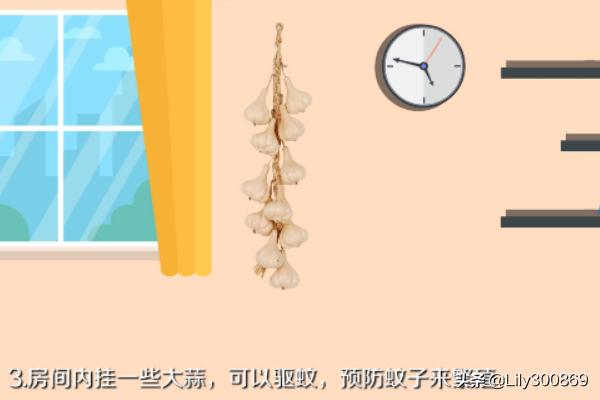 第四:房间内可以挂一些大蒜,大蒜亦有一定驱蚊的功效。