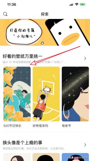 2/打开该App后,我们点击下方探索,然后点击打开一个壁纸,如图所示