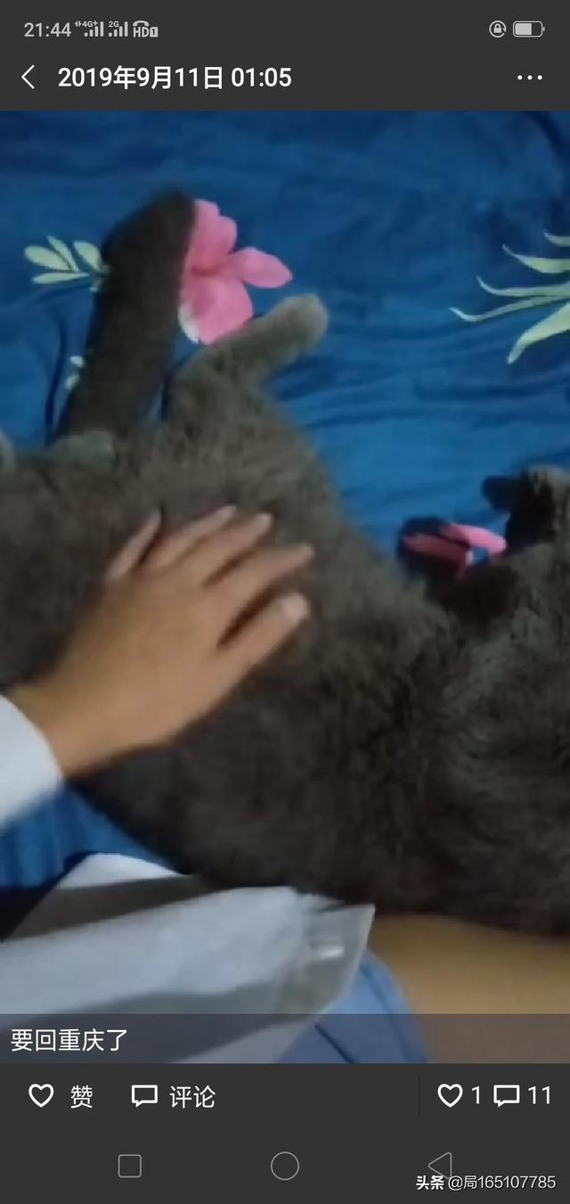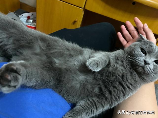 家里一只蓝猫两只渐层,蓝猫的性格跟渐层比起来好太多了,随便剪趾甲,洗澡,没有禁区,哪里都能撸。一碰它就四脚朝天,超级黏人,随便牵出去溜达。我在哪里它就在身边或者脚下。超级暖,别的猫都不黏人,就它防不胜防动不动就趴我脖子上或者头上。不过我家猫睡觉差不多都一个姿势,都爱四脚朝天。