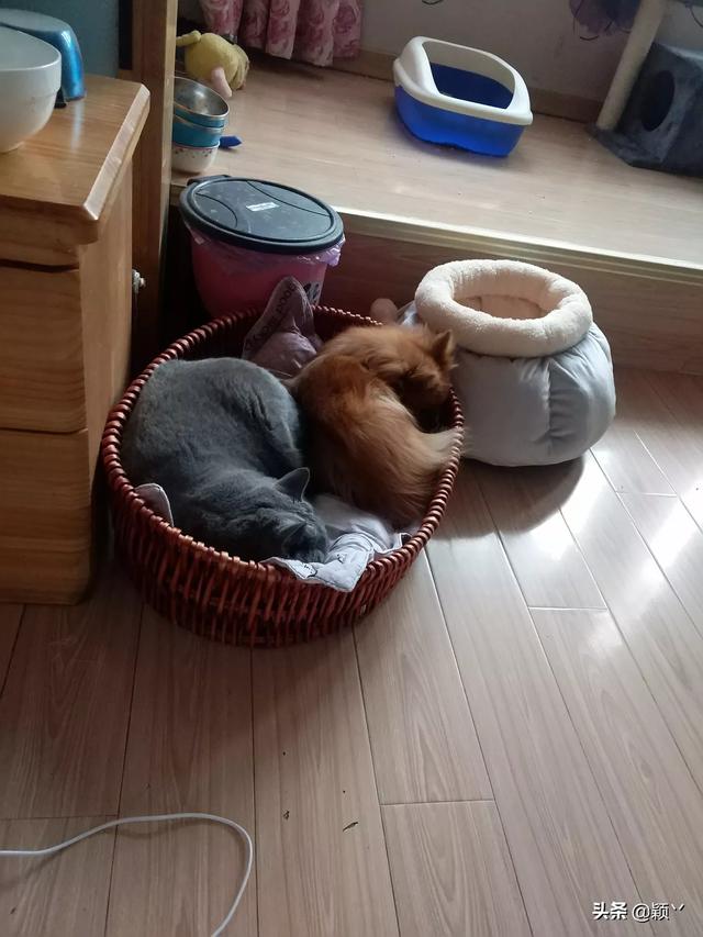 我家蓝猫胆小,高冷!不让抱不粘人!我认为它不亲人是因为:它小时候我天天上班早出晚归,陪它时间不多!它是我家博美犬带大的[捂脸]