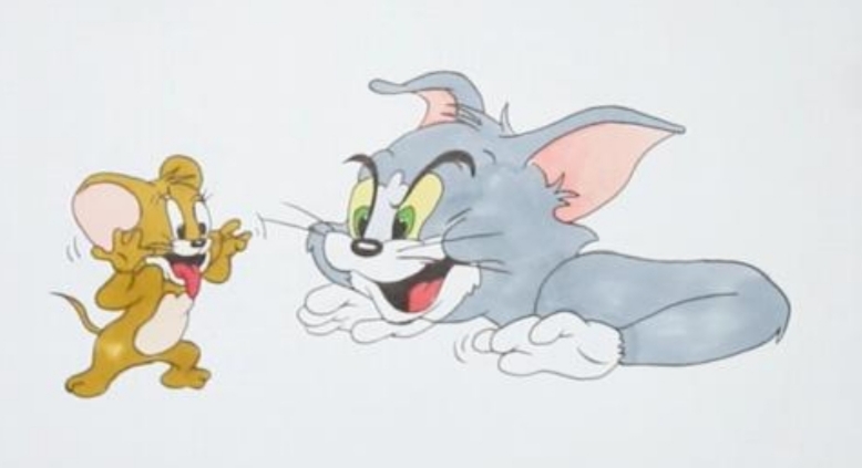 总结:在画这幅猫和老鼠的时候,注意猫和老鼠之间的表情和动作的表现,胡须不要忘记画了。