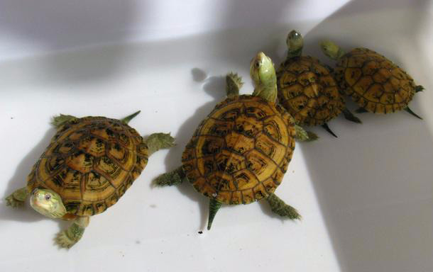 2、饲养时,龟池内的水根据龟的大小不同去改变,幼龟时,水深只要浸没龟背即可,之后逐渐加深,但是水不要太多,刚够盖过它的龟壳就可以了,要保证龟的头颈能够伸出水面呼吸。夏天温度高时,一定要把乌龟放在阴凉的地方,因为夏天乌龟比较容易中暑,乌龟一旦中暑了就会出现头个四肢都露在壳外,不能收回去,状态很象死了一样,如果水过多的话乌龟就会被淹死。金钱龟在十一月左右就会进入冬眠,一直持续到来年的4月苏醒。