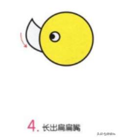 4、在眼睛的下面的头上,画一张长扁形的嘴巴。小鸭子的嘴巴是灵魂。