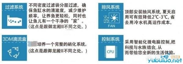 国家发明专利和实用新型专利两项专利授权,利用重力渗压原理,科学的解决鱼缸全方位调节水位、清洁鱼便、残渣、去除油膜等问题,配合8向压力回避的滑轨设计,确保系统遮蔽区亚克力渗压板平整稳固、维护便捷、操作方便,全功能快速吸除水面油膜及粉尘,高效祛除底部残渣。久鼎生态雨淋干湿系统:雨淋Atomize汇流盒锥型孔位设计,最大效能雾化水流,湿地Cross生态毯特殊3d设计,形成激流增大溶氧,干湿Spring离水板完全离水干式设计,可自主放入不同过滤材料。