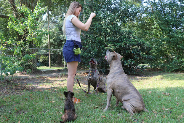 3、口令清楚:为了让狗理解和记忆,训练时口令最好使用简短、发音清楚的语句,而且不宜反复地说。发命令时,要避免大声大气或带有发怒的口吻。因为狗是 非常敏感的,上述做法会使狗渐渐地把挨骂和训练联系在一起。