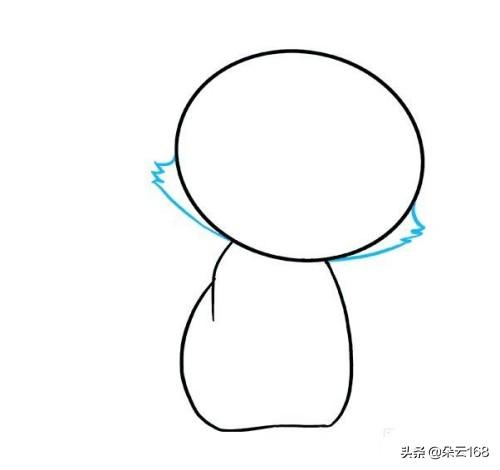 5.删除原始圆圈留下的引导线。使用一系列连接在锯齿状点的短曲线围住每个耳朵的内三角形。