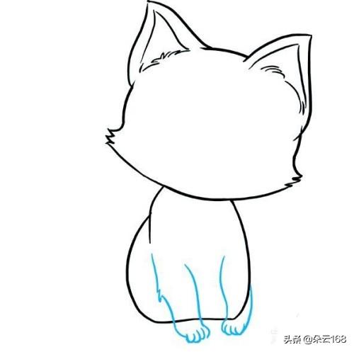 4、画出小猫咪的身体和可爱的小脚丫。