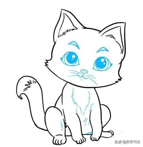 这样一只可爱的小猫咪就完成了,你也可以根据自己的喜好再给小猫咪画上一些装饰品,让它变得更加可爱。