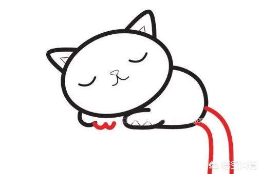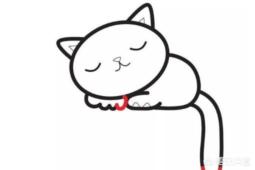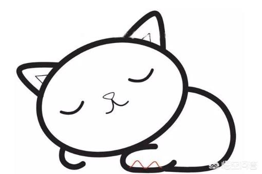 五、把嘴巴完成并画一个部分椭圆形的爪子,画闭着的眼睛曲线。