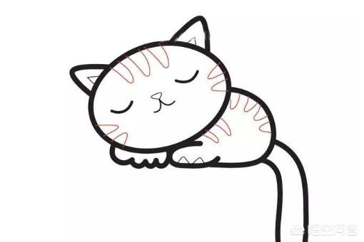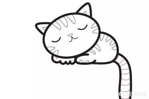 十一、给尾巴画上条纹,小猫简笔画制作完成。