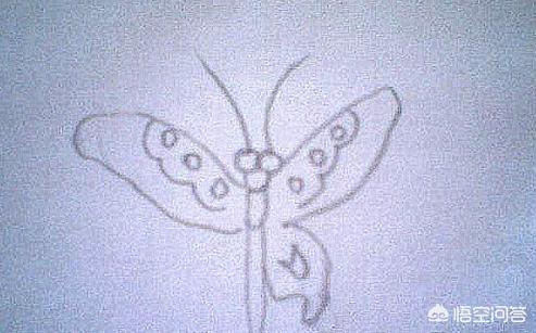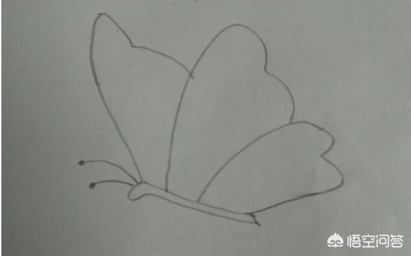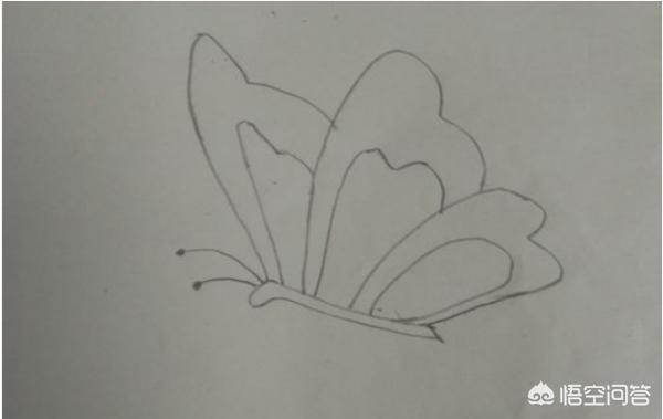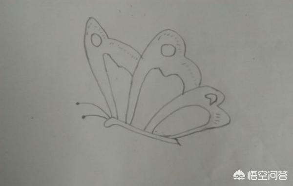 3、画好后再画蝴蝶漂亮的翅膀,翅膀有棱有角,翅膀的形状各种各样,可根据自己的喜好自己设计。