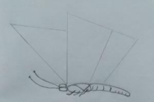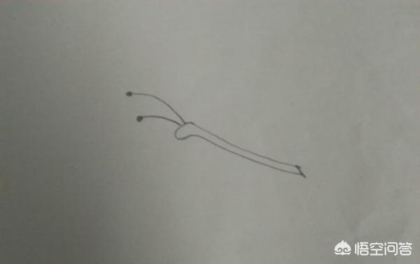 2、首先先画蝴蝶虫变的身子,扁扁的脑袋长长的身子,以及蝴蝶脑袋上长长的须子。
