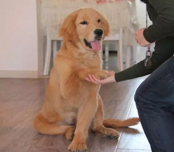 狗狗有着非常敏锐的听觉,不仅能够对口令手势形成条件反射,还能够对同一口令手势的不同来产生相对应的条件发射。训练金毛时我们要合理地运用口令及手势,口令要简短明确,不能太过繁杂。最好有相对应的手势这样即便是有一定的距离也有效果。在训练时语气态度要明确,不能模凌两可。