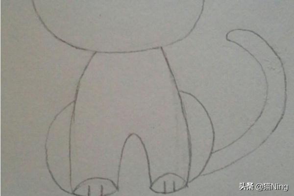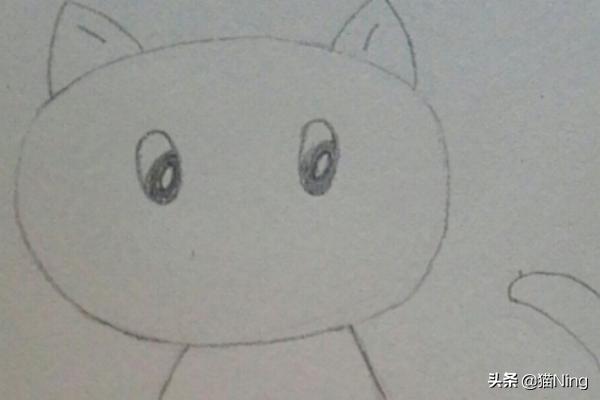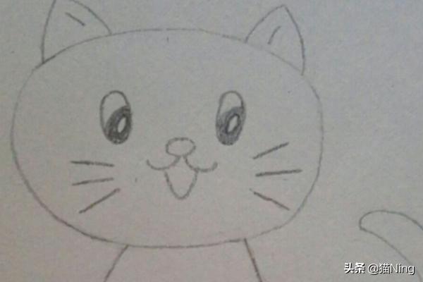 6、画一个椭圆形作鼻子,用弧线画出嘴巴,左右两侧画出横线作为猫的胡须。