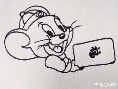 3、接着画出jerry小老鼠的一只手和手里拿的红包