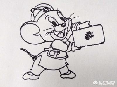 3、接着画杰克老鼠的脸部表情,把它的身体其它部分画完,尾巴不要忘记画啦;