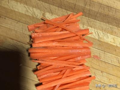 2、萝卜切成条,这样后续要切丁。
