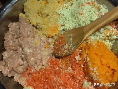 5、颜色很棒 ,这里讲一下卷心菜可以用紫甘蓝,红薯用紫薯也可以,将所有食材混合在一起。